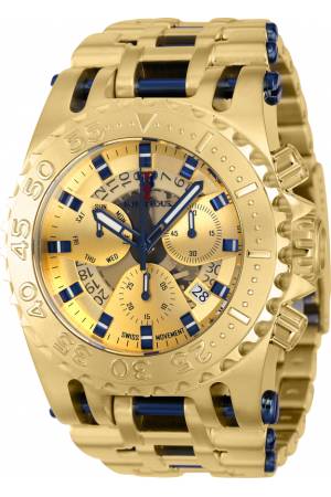 Band For Invicta Chaos IMP1104, Band Material Stainless Steel, Band Color Dark Blue, Gold, Band Width 35.60 mm, Band Length 210 mm, Buckle Type Fold over safety, Clasp Type Deployment, Safety