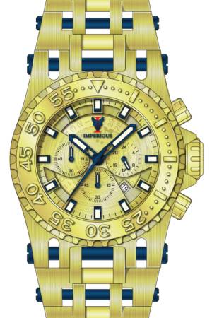Band For Invicta Chaos IMP1153, Band Material Stainless Steel, Band Color Dark Blue, Gold, Band Width 35.60 mm, Band Length 210 mm, Buckle Type Fold over safety, Clasp Type Deployment, Safety