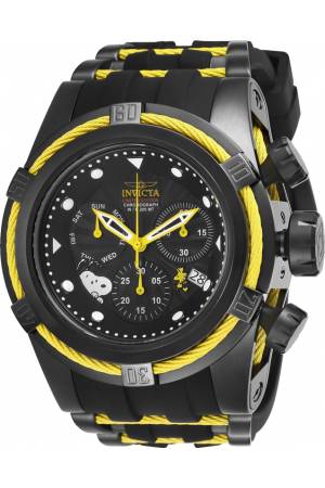 Band For Invicta Character Collection 25007, Band Material Stainless Steel, Silicone, Band Color Black, Yellow, Band Width 36.8 mm, Band Length 210 mm, Buckle Type Buckle, Clasp Type Regular