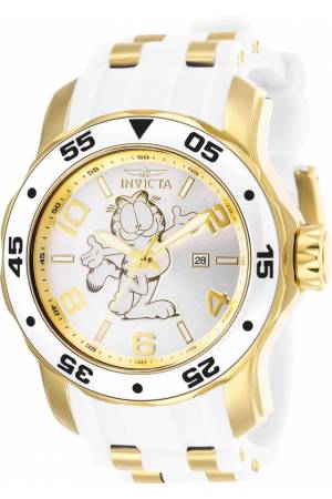 Band For Invicta Character Collection 25156, Band Material Stainless Steel, Silicone, Band Color Gold, White, Band Width 26 mm, Band Length 205 mm, Buckle Type Buckle, Clasp Type Regular