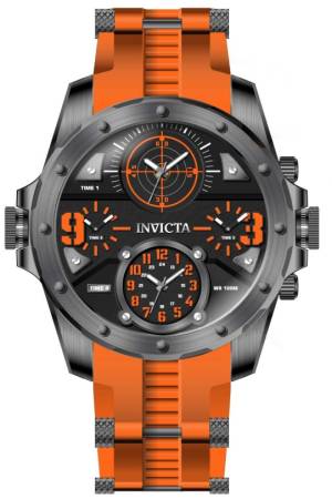 Band For Invicta Coalition Forces 45625, Band Material Silicone, Stainless Steel, Band Color Orange, Gunmetal, Band Width 26 mm, Band Length 200 mm, Buckle Type Buckle, Clasp Type Regular