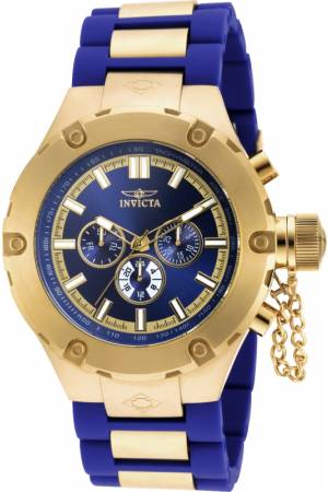 Band For Invicta Corduba 19236, Band Material Stainless Steel, Polyurethane, Band Color Gold, Blue, Band Width 28 mm, Band Length 210 mm, Buckle Type Fold over safety, Clasp Type Safety