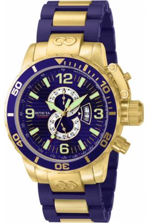 Band For Invicta Corduba 6599, Band Material Stainless Steel, Polyurethane, Band Color Gold, Blue, Band Width 28 mm, Band Length 230 mm, Buckle Type Butterfly, Clasp Type Butterfly