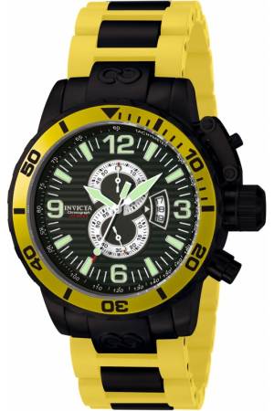 Band For Invicta Corduba 6602, Band Material Stainless Steel, Polyurethane, Band Color Black, Yellow, Band Width 28 mm, Band Length 230 mm, Buckle Type Butterfly, Clasp Type Jewelry