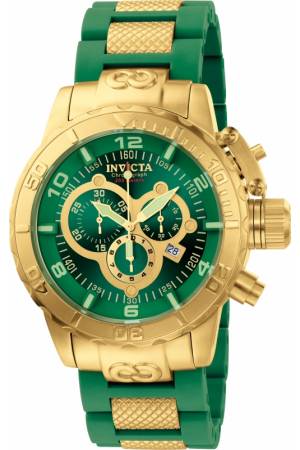 Band For Invicta Corduba 6679, Band Material Stainless Steel, Polyurethane, Band Color Gold, Green, Band Width 28 mm, Band Length 230 mm, Buckle Type Butterfly push button, Clasp Type Push Button, Deployment