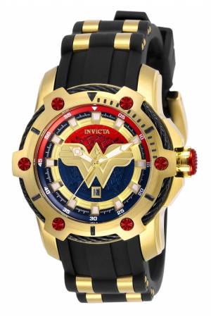 Band For Invicta DC Comics 26834, Band Material Silicone, Stainless Steel, Band Color Black, Gold, Band Width 22 mm, Band Length 189 mm, Buckle Type Buckle, Clasp Type Regular