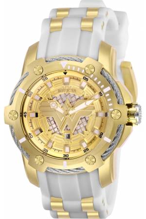 Band For Invicta DC Comics 26835, Band Material Silicone, Stainless Steel, Band Color White, Gold, Band Width 22 mm, Band Length 189 mm, Buckle Type Buckle, Clasp Type Regular