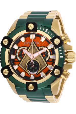 Band For Invicta DC Comics 26910, Band Material Stainless Steel, Band Color Gold, Green, Band Width 31 mm, Band Length 230 mm, Buckle Type Fold over safety, Clasp Type Safety, Deployment