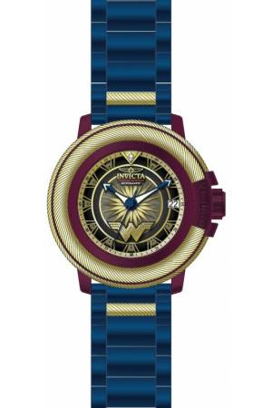 Band For Invicta DC Comics 27498, Band Material Stainless Steel, Band Color Dark Blue, Gold, Band Width 20 mm, Band Length 210 mm, Buckle Type Diver, Clasp Type Deployment, Safety