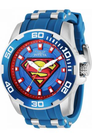 Band For Invicta DC Comics 32479, Band Material Silicone, Stainless Steel, Band Color Blue, Steel, Band Width 26 mm, Band Length 185 mm, Buckle Type Buckle, Clasp Type