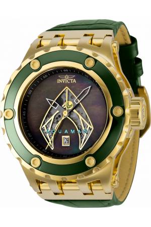 Band For Invicta DC Comics 36573, Band Material Leather, Stainless Steel, Band Color Green, Gold, Band Width 31 mm, Band Length 210 mm, Buckle Type Buckle, Clasp Type Buckle