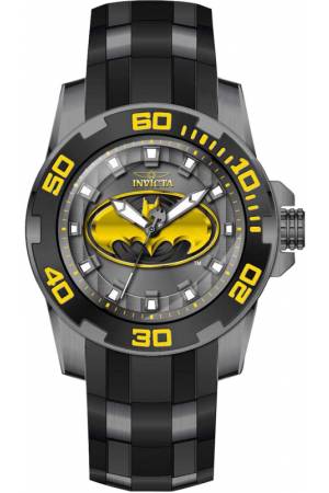 Band For Invicta DC Comics 40473, Band Material Silicone, Stainless Steel, Band Color Gunmetal, Black, Band Width 26 mm, Band Length 210 mm, Buckle Type Buckle, Clasp Type