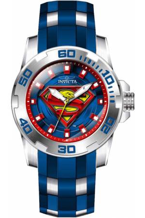 Band For Invicta DC Comics 40474, Band Material Silicone, Stainless Steel, Band Color Blue, Steel, Band Width 26 mm, Band Length 185 mm, Buckle Type Buckle, Clasp Type