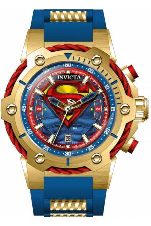 Band For Invicta DC Comics 41182, Band Material Silicone, Stainless Steel, Band Color Blue, Gold, Band Width 30 mm, Band Length 190 mm, Buckle Type Buckle, Clasp Type
