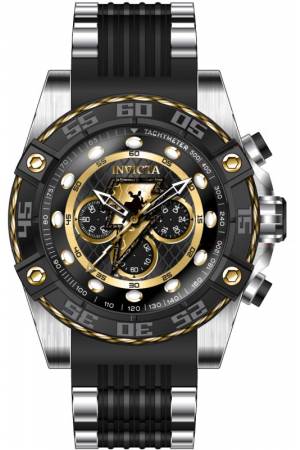 Band For Invicta DC Comics 41249, Band Material Silicone, Stainless Steel, Band Color Black, Gold, Band Width 26 mm, Band Length 210 mm, Buckle Type Buckle, Clasp Type