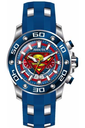 Band For Invicta DC Comics 43592, Band Material Silicone, Stainless Steel, Band Color Blue, Steel, Band Width 26 mm, Band Length 220 mm, Buckle Type Buckle, Clasp Type