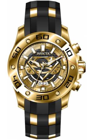 Band For Invicta DC Comics 43593, Band Material Silicone, Stainless Steel, Band Color Black, Gold, Band Width 26 mm, Band Length 220 mm, Buckle Type Buckle, Clasp Type