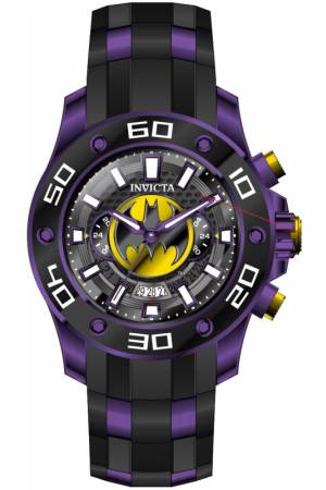 Band For Invicta DC Comics 43596, Band Material Silicone, Stainless Steel, Band Color Purple, Black, Band Width 26 mm, Band Length 220 mm, Buckle Type Buckle, Clasp Type