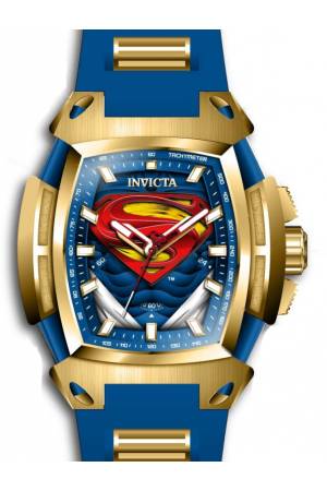 Band For Invicta DC Comics 43728, Band Material Silicone, Stainless Steel, Band Color Blue, Gold, Band Width 31 mm, Band Length 210 mm, Buckle Type Buckle, Clasp Type