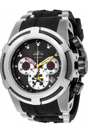 Band For Invicta Disney Limited Edition 23236, Band Material Stainless Steel, Silicone, Band Color Steel, Black, Band Width 36.8 mm, Band Length 210 mm, Buckle Type Buckle, Clasp Type Regular