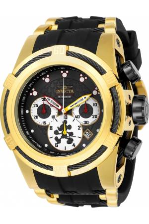 Band For Invicta Disney Limited Edition 23237, Band Material Silicone, Stainless Steel, Band Color Black, Gold, Band Width 36.8 mm, Band Length 210 mm, Buckle Type Buckle, Clasp Type Regular