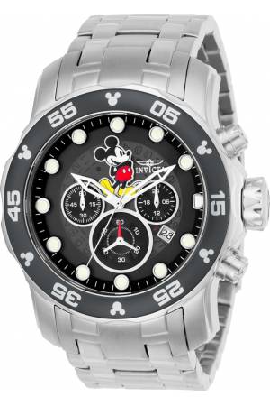 Band For Invicta Disney Limited Edition 23768, Band Material Stainless Steel, Band Color Steel, Band Width 26 mm, Band Length 196.5 mm, Buckle Type Fold over safety, Clasp Type Safety