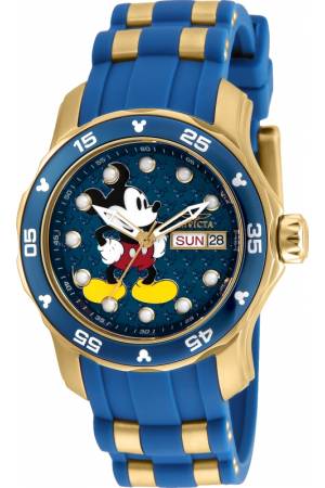 Band For Invicta Disney Limited Edition 23771, Band Material Stainless Steel, Silicone, Band Color Gold, Blue, Band Width 20 mm, Band Length 210 mm, Buckle Type Buckle, Clasp Type Regular
