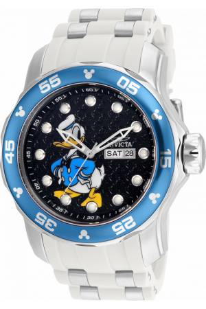 Band For Invicta Disney Limited Edition 25597, Band Material Silicone, Stainless Steel, Band Color White, Steel, Band Width 26 mm, Band Length 210 mm, Buckle Type Buckle, Clasp Type Regular