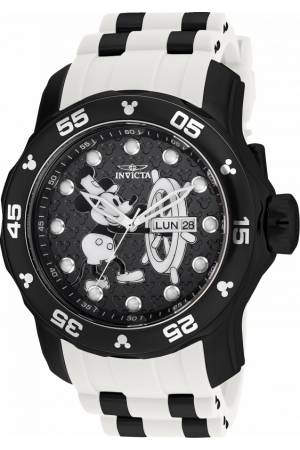 Band For Invicta Disney Limited Edition 25763, Band Material Stainless Steel, Silicone, Band Color Black, White, Band Width 26 mm, Band Length 210 mm, Buckle Type Buckle, Clasp Type Regular