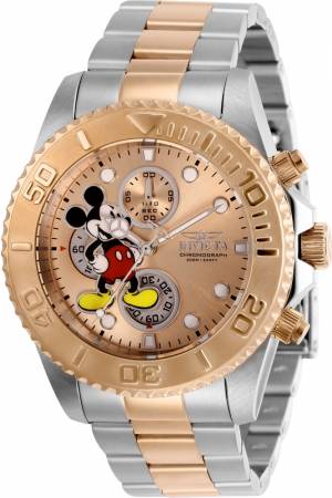 Band For Invicta Disney Limited Edition 27391, Band Material Stainless Steel, Band Color Rose Gold, Steel, Band Width 22 mm, Band Length 210 mm, Buckle Type Fold over safety, Clasp Type Foldover, Safety