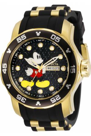 Band For Invicta Disney Limited Edition 30766, Band Material Silicone, Stainless Steel, Band Color Black, Gold, Band Width 26 mm, Band Length 210 mm, Buckle Type Buckle, Clasp Type Regular