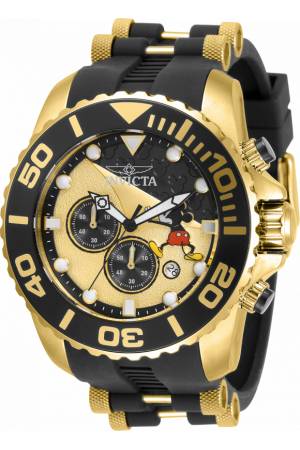 Band For Invicta Disney Limited Edition 32474, Band Material Silicone, Stainless Steel, Band Color Black, Gold, Band Width 26 mm, Band Length 210 mm, Buckle Type Buckle, Clasp Type