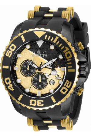 Band For Invicta Disney Limited Edition 32476, Band Material Silicone, Stainless Steel, Band Color Black, Gold, Band Width 26 mm, Band Length 210 mm, Buckle Type Buckle, Clasp Type