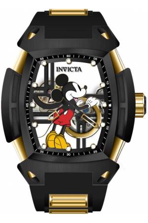Band For Invicta Disney Limited Edition 44071, Band Material Silicone, Stainless Steel, Band Color Black, Gold, Band Width 31 mm, Band Length 210 mm, Buckle Type Buckle, Clasp Type
