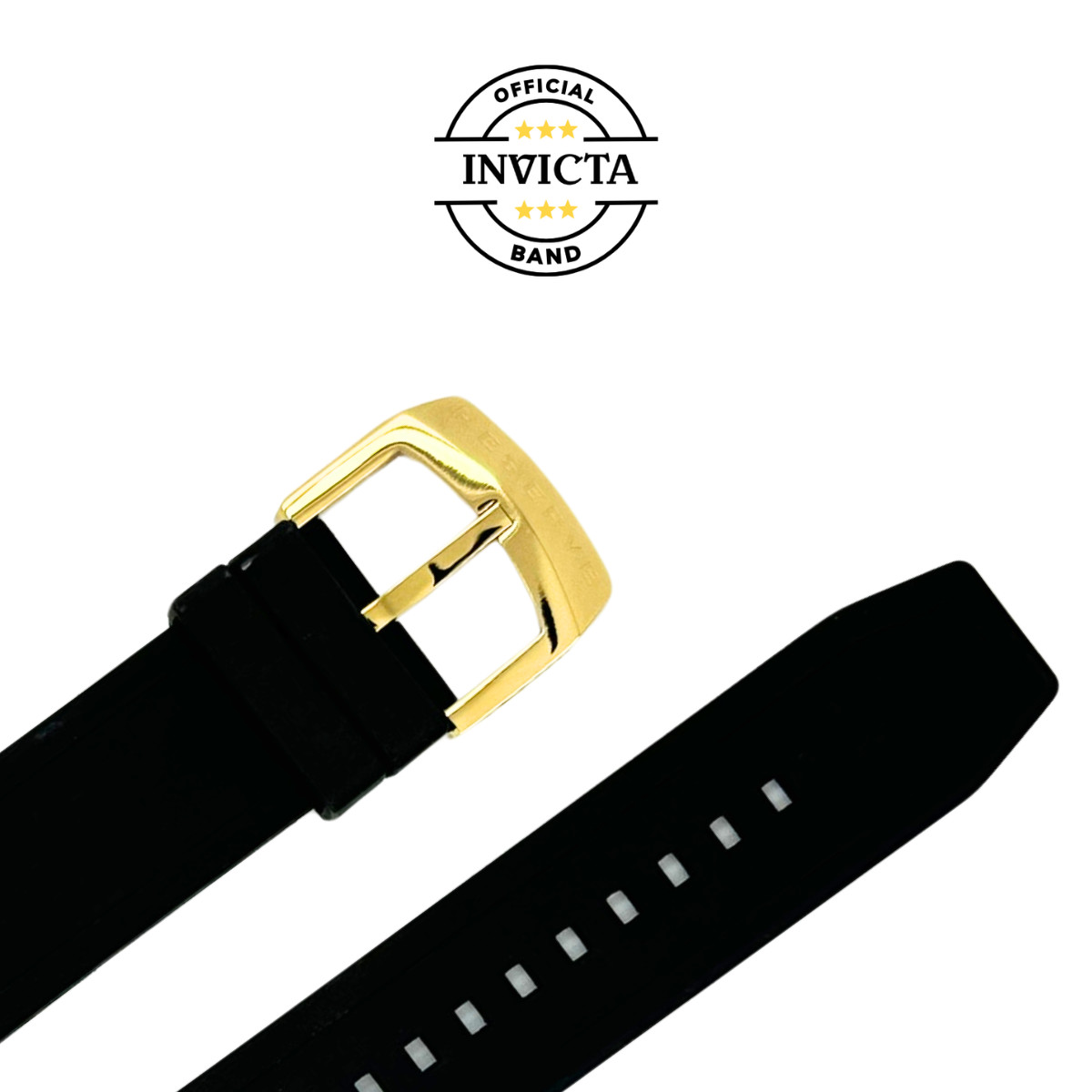 Band For Invicta Excursion 6268, Band Material Stainless Steel, Polyurethane, Band Color Gold, Black, Band Width 26 mm, Band Length 210 mm, Buckle Type Buckle, Clasp Type Regular