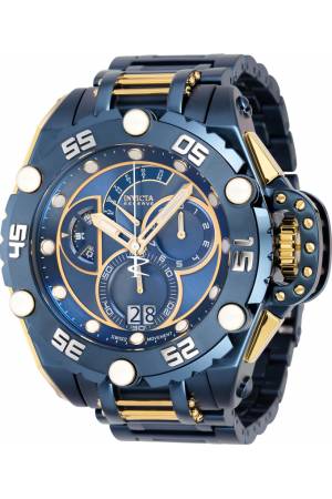 Band For Invicta Flying Fox 36845, Band Material Stainless Steel, Band Color Dark Blue, Gold, Band Width 26.0 mm, Band Length 210 mm, Buckle Type Fold over safety, Clasp Type Deployment, Safety