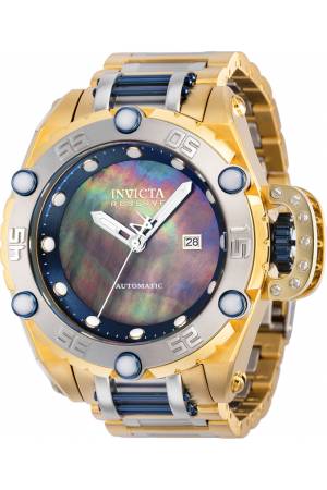 Band For Invicta Flying Fox 37041, Band Material Stainless Steel, Band Color Dark Blue, Gold, Steel, Band Width 26.0 mm, Band Length 210 mm, Buckle Type Fold over safety, Clasp Type Deployment, Safety