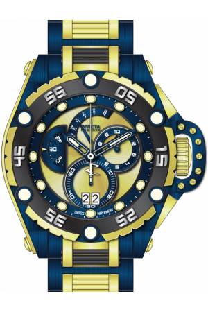 Band For Invicta Flying Fox 38733, Band Material Stainless Steel, Band Color Dark Blue, Black, Gold, Band Width 26.0 mm, Band Length 210 mm, Buckle Type Fold over safety, Clasp Type Deployment, Safety