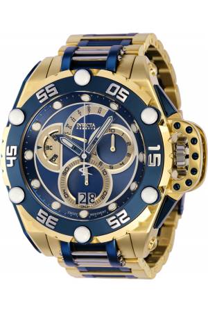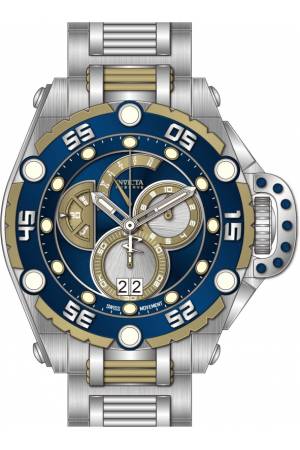 Band For Invicta Flying Fox 38733, Band Material Stainless Steel, Band Color Dark Blue, Black, Gold, Band Width 26.0 mm, Band Length 210 mm, Buckle Type Fold over safety, Clasp Type Deployment, Safety