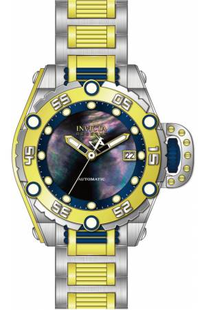 Band For Invicta Flying Fox 43238, Band Material Stainless Steel, Band Color Dark Blue, Gold, Steel, Band Width 20.0 mm, Band Length 185 mm, Buckle Type Fold over safety, Clasp Type Deployment, Safety
