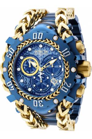 Band For Invicta Gladiator 36623, Band Material Stainless Steel, Band Color Dark Blue, Gold, Band Width 41 mm, Band Length 210 mm, Buckle Type Fold over safety, Clasp Type Deployment, Safety