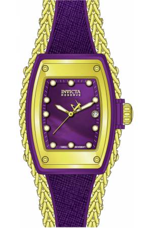 Band For Invicta Gladiator 43360, Band Material Leather, Silicone, Stainless Steel, Band Color Purple, Gold, Band Width 22 mm, Band Length 180 mm, Buckle Type Buckle, Clasp Type