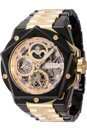 Band For Invicta Helios 44602, Band Material Stainless Steel, Band Color Black, Gold, Band Width 34.70 mm, Band Length 210 mm, Buckle Type Fold over safety, Clasp Type Deployment, Safety