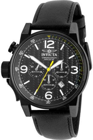 Band For Invicta I-Force 20140, Band Material Leather, Band Color Black, Band Width 24 mm, Band Length 210 mm, Buckle Type Buckle, Clasp Type Regular