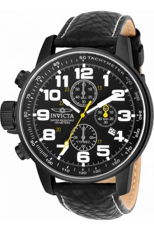 Band For Invicta I-Force 3332, Band Material Leather, Band Color Black, Band Width 22 mm, Band Length 210 mm, Buckle Type Buckle, Clasp Type Foldover, Buckle