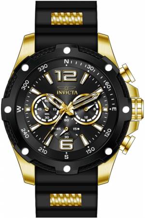 Band For Invicta I-Force 39995, Band Material Silicone, Stainless Steel, Band Color Black, Gold, Band Width 24 mm, Band Length 220 mm, Buckle Type Buckle, Clasp Type