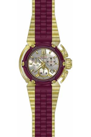Band For Invicta Jason Taylor 30218, Band Material Stainless Steel, Band Color Gold, Burgundy, Band Width 34 mm, Band Length 210 mm, Buckle Type Diver, Clasp Type Deployment, Safety