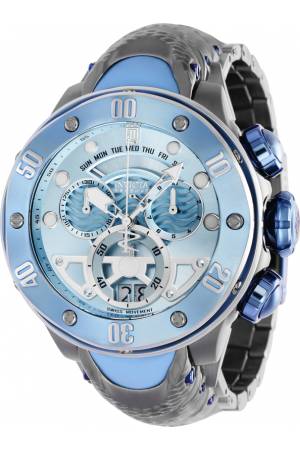 Band For Invicta Jason Taylor 38566, Band Material Stainless Steel, Silicone, Band Color Titanium, Light Blue, Band Width 30.4 mm, Band Length 210 mm, Buckle Type Fold over safety, Clasp Type Deployment, Safety