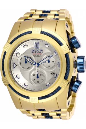 Band For Invicta JT 14426, Band Material Stainless Steel, Band Color Dark Blue, Gold, Band Width 36.8 mm, Band Length 187 mm, Buckle Type Fold over safety, Clasp Type Deployment, Safety