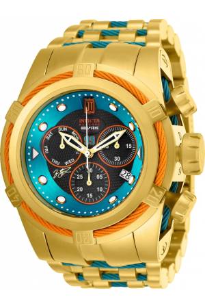 Band For Invicta JT 25308, Band Material Stainless Steel, Band Color Blue, Gold, Band Width 36.8 mm, Band Length 210 mm, Buckle Type Fold over safety, Clasp Type Deployment, Safety